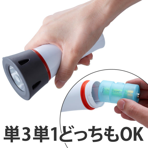 ●単3形アルカリ乾電池(電池交換アダプター使用)と、単1形アルカリ乾電池のどちらも使える防水ライトです。