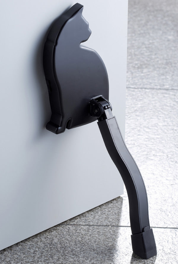 足でレバーを降ろすだけカワイイ猫のドアストッパー