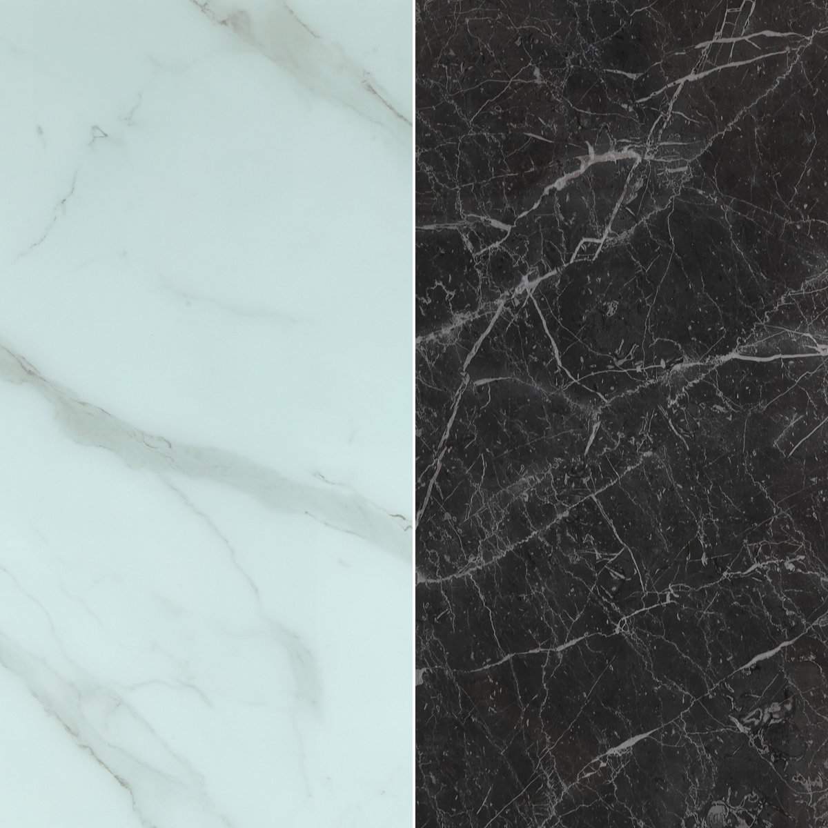 石目柄の天板は、清潔感を感じられるホワイトと、エレガントな雰囲気のブラックからお選びいただけます。