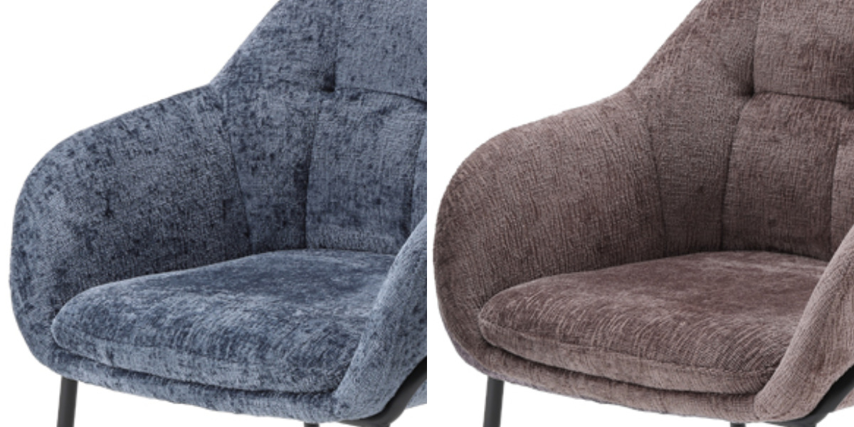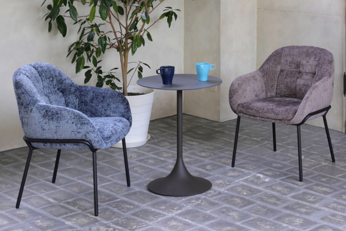 カラーはブルーとブラウンからお選びいただけます。主張しすぎない落ち着いたトーンでありながら、空間によく映える絶妙な配色です。1脚ずつ購入できるので、同じ色で揃えて統一感を出すのはもちろん、あえて色違いを組み合わせて楽しむコーディネートもおすすめです。