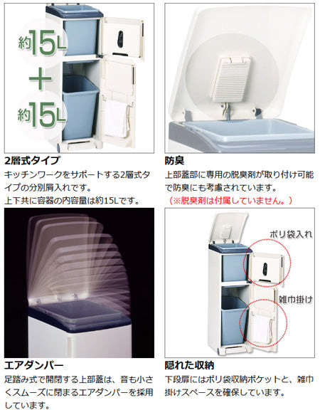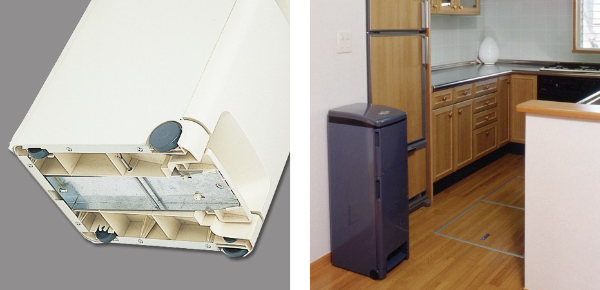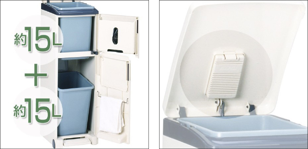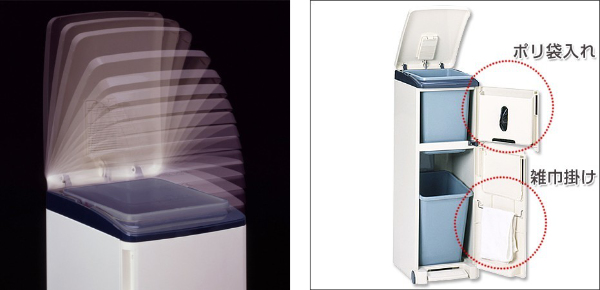 ![]() エアダンパー 足踏み式で開閉する上部蓋は、音も小さくスムーズに閉まるエアダンパーを採用しています。 |