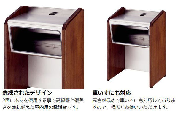 洗練されたデザイン 2面に木材を使用する事で高級感と優美さを兼ね備えた屋内用の電話台です。 |