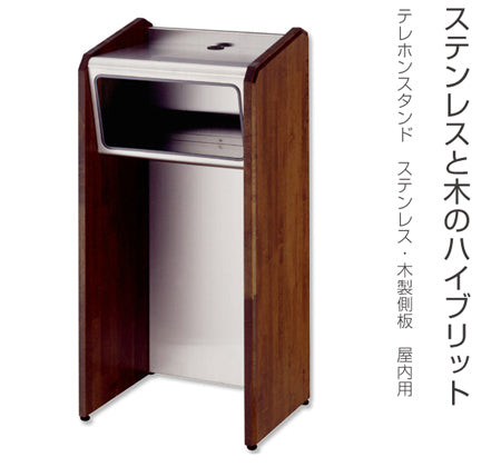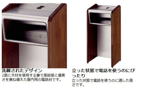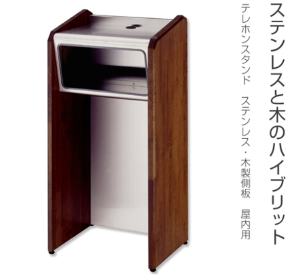 洗練されたデザイン 2面に木材を使用する事で高級感と優美さを兼ね備えた屋内用の電話台です。 |