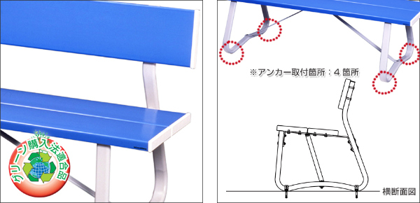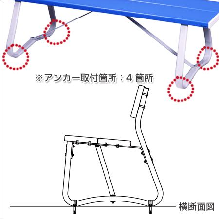 | 備考 | 組立品 ベンチの転倒防止にアンカー固定が可能です。(別途ご用意下さい。) |
