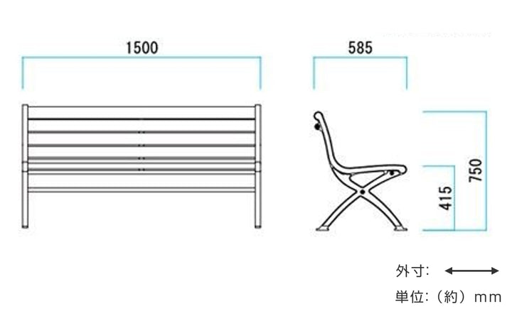 | サイズ | 約 幅150×奥行58.5×高さ75(cm) 座面高:約 41.5(cm) |
