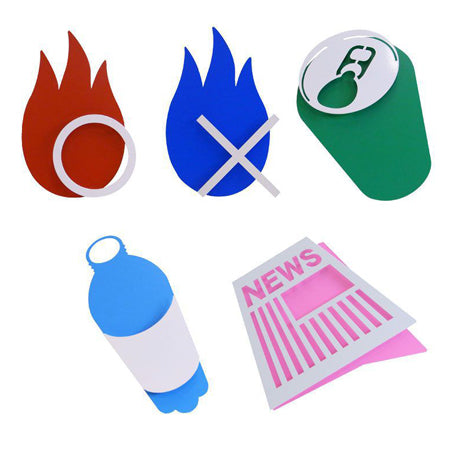 | デザイン | もえるごみ、もえないごみ、空カン、ペットボトル、新聞・雑誌 |