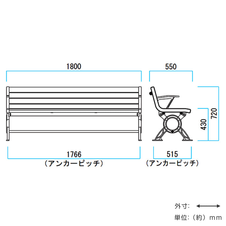 ※ベンチの形状によってアンカーの取り付け位置や形状が異なりますのでご注意ください。