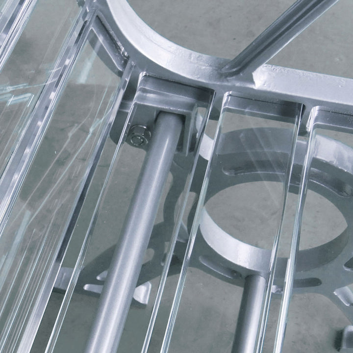 | 材質 | 座板:アクリル樹脂 脚部:アルミ鋳物(粉体塗装) 補強フレーム:スチール(粉体塗装) |