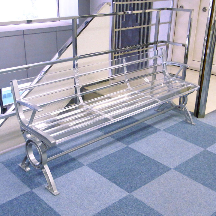 近未来的な雰囲気がありながらクリアな仕上がりが周りの景色にとけこみ、独特の存在感を演出するベンチです。公共施設、レジャー施設、冠婚葬祭施設、複合施設など様々なシーンに映えるデザインです。