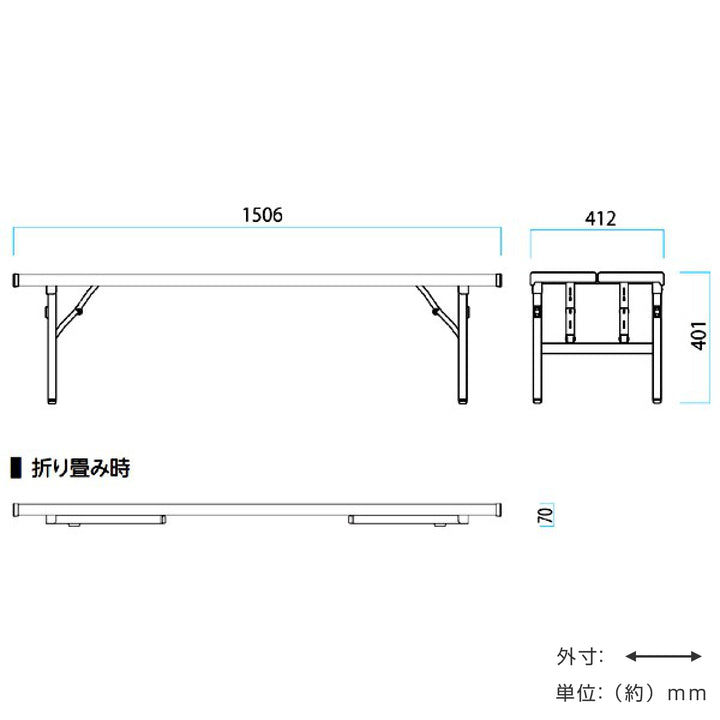 【法人限定】 業務用 屋内外対応折りたたみベンチFB 背なしタイプ 150.6cm 2~3人掛け