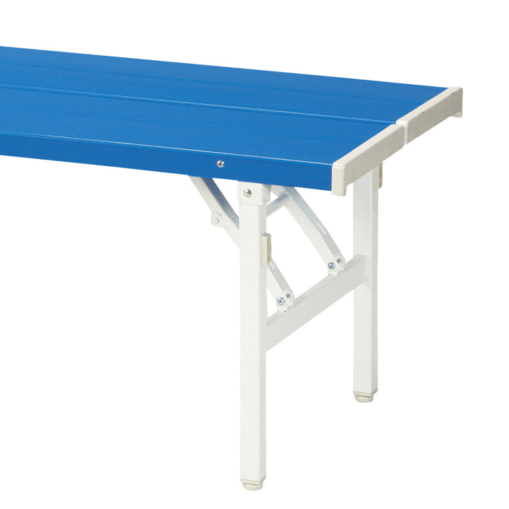 2~3名が腰かけられる長さ150.6cmのベンチを、折りたたんでどこでも持ち運ぶことができます。屋内外問わず使用できる樹脂製なので、公共施設、ホテル、工場、学校など場所を選ばずに配置することができます。