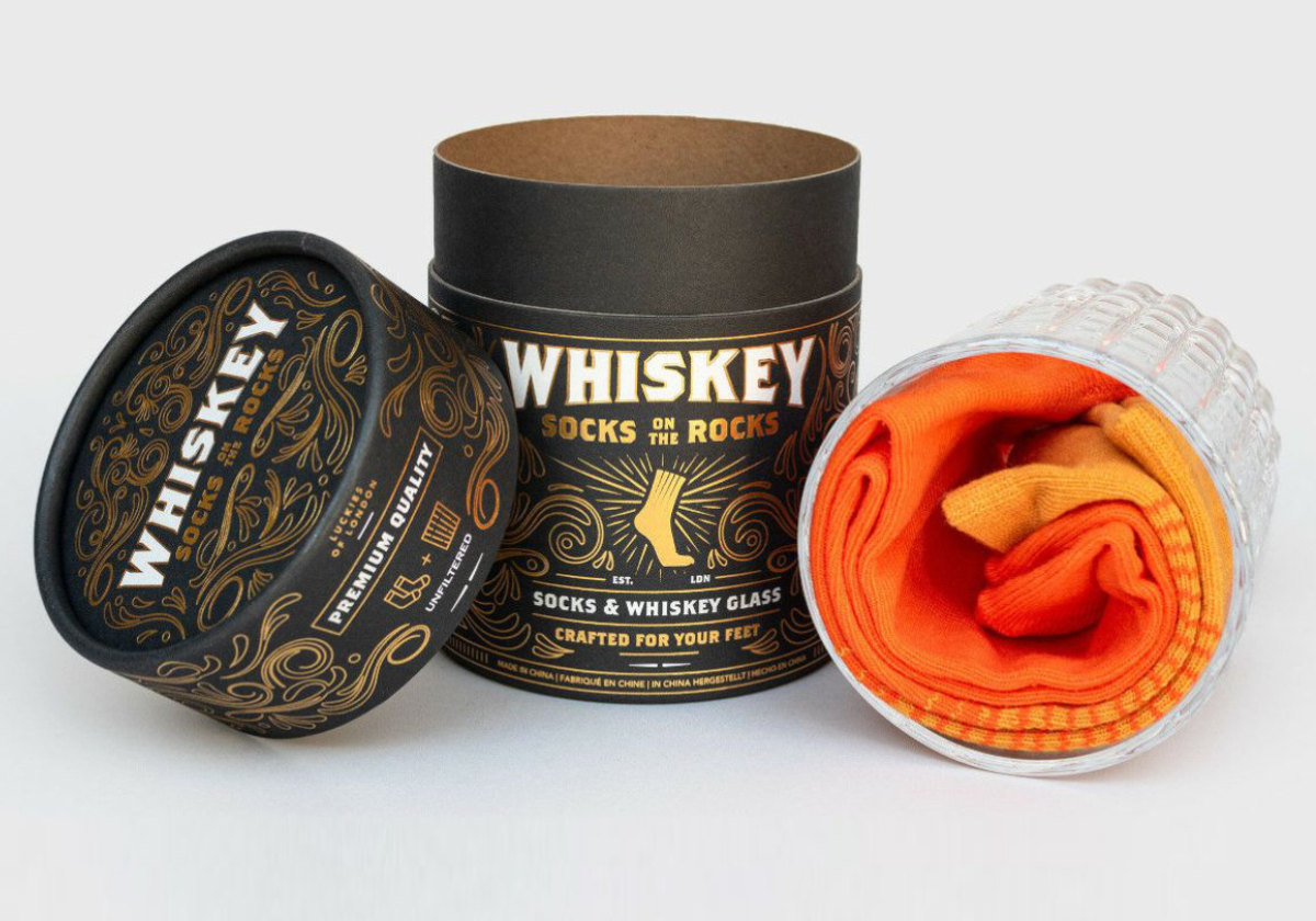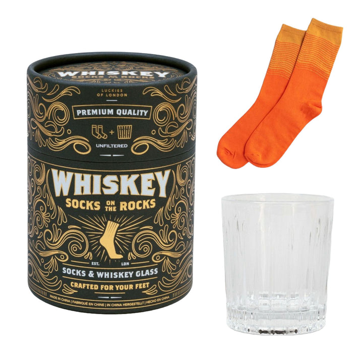 グラスとウイスキー色の靴下がセットになった、思わず二度見してしまうユニークなアイテムです。ウイスキーが入ったロックグラスに見える遊び心あふれるデザインで、靴下を取り出した後はグラスを実用品としてお使いいただけます。ギフトにピッタリのセットです。