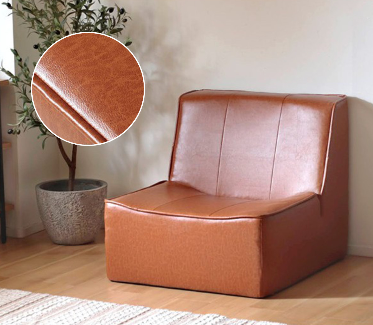 お部屋の雰囲気を格上げする、PVCレザーの1人掛けソファです。おしゃれなヴィンテージ調のデザインは、置くだけで空間が一気に洗練された雰囲気に。大人の余裕感溢れるヴィンテージモダンはもちろん、北欧風やナチュラルテイストなど幅広いインテリアになじみます。