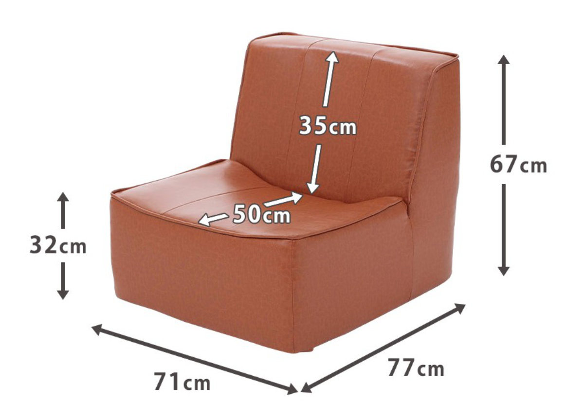 座面幅71cmと広々サイズで、あぐらもかけます。座面奥行も50cmあるので深く腰掛けてゆったりくつろげます。