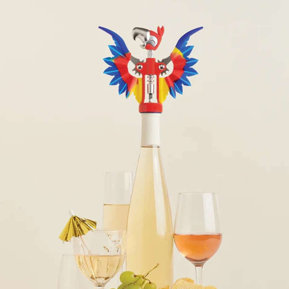 オウム型のデザインが目を引くボトルオープナーです。コルクにねじ込んで、翼を閉じるだけで簡単にポンッと開栓できます。見た目も使い方も楽しいアイテムです。