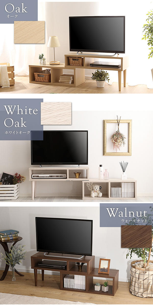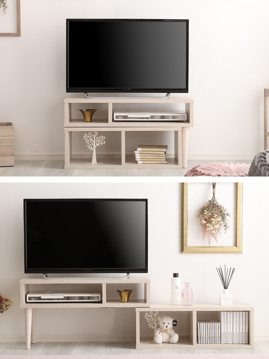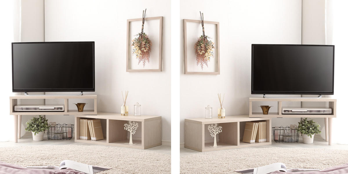 テレビやお部屋のサイズに合わせて、コンパクトにもワイドにも調整可能です。自由なレイアウトで、リビングにぴったりフィットします。