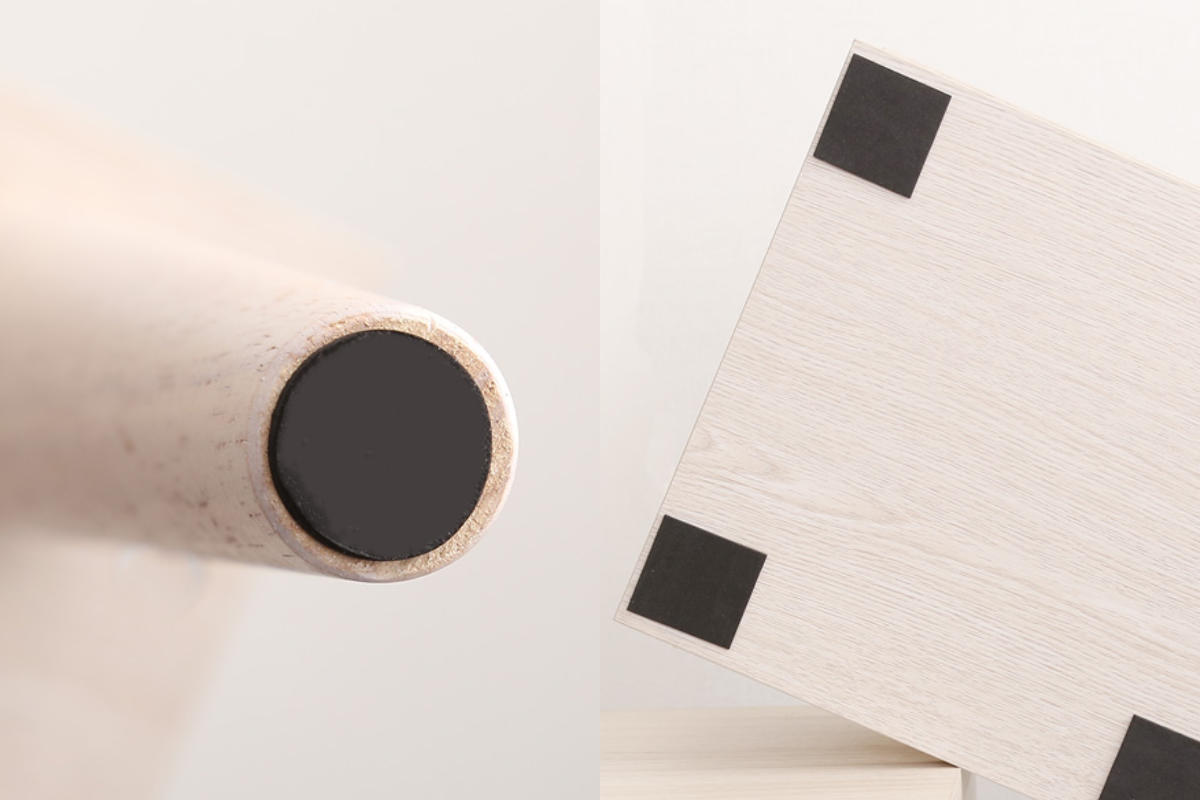 脚の裏と天板裏(上段)にはクッションが付いており、床や家具を傷つけにくくしています。