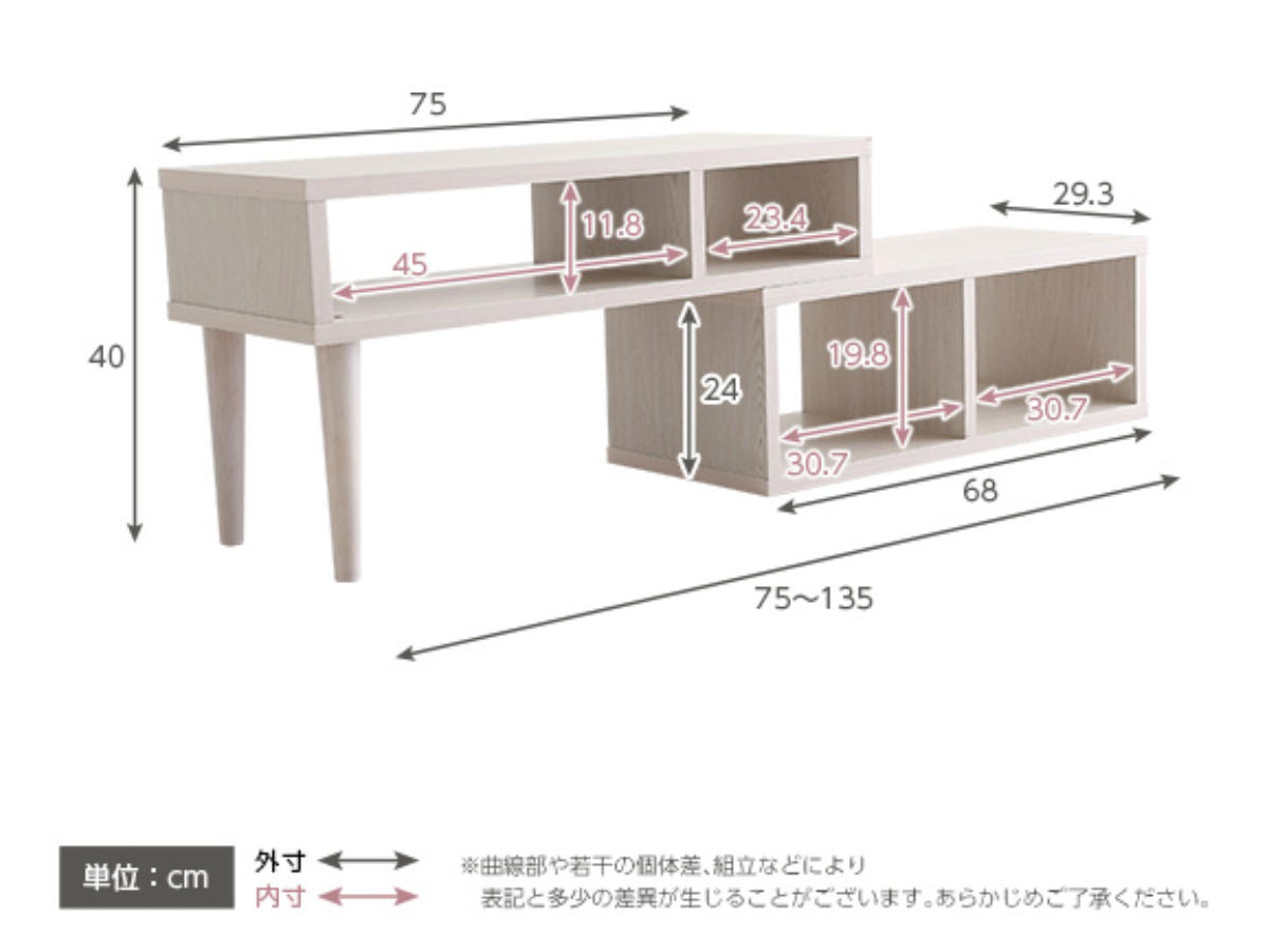 | サイズ | 約 幅75~135×奥行29.3×高さ40cm |