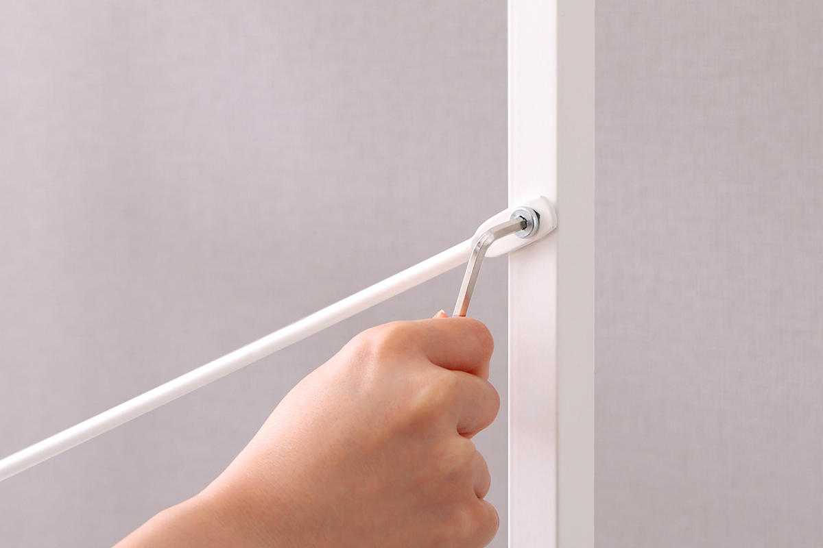 フレームはキズがつきにくいパウダーコーティング仕上げ。ドライバー不要で組立可能。天板とクロスバーは六角レンチで取り付けます。