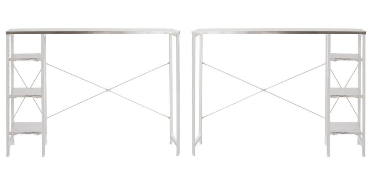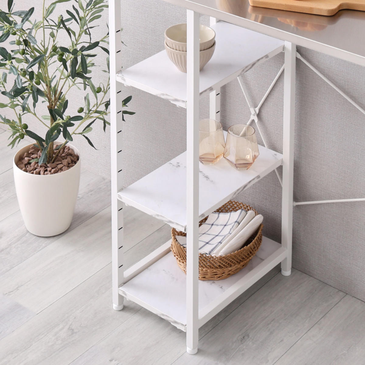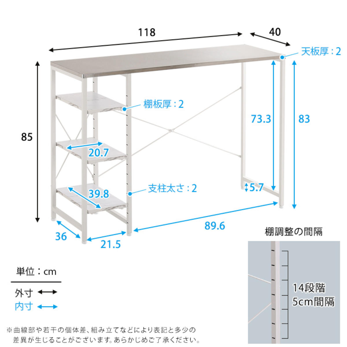 キッチンカウンター 幅118cm ステンレス天板 大理石調 可動棚 ゴミ上ラック