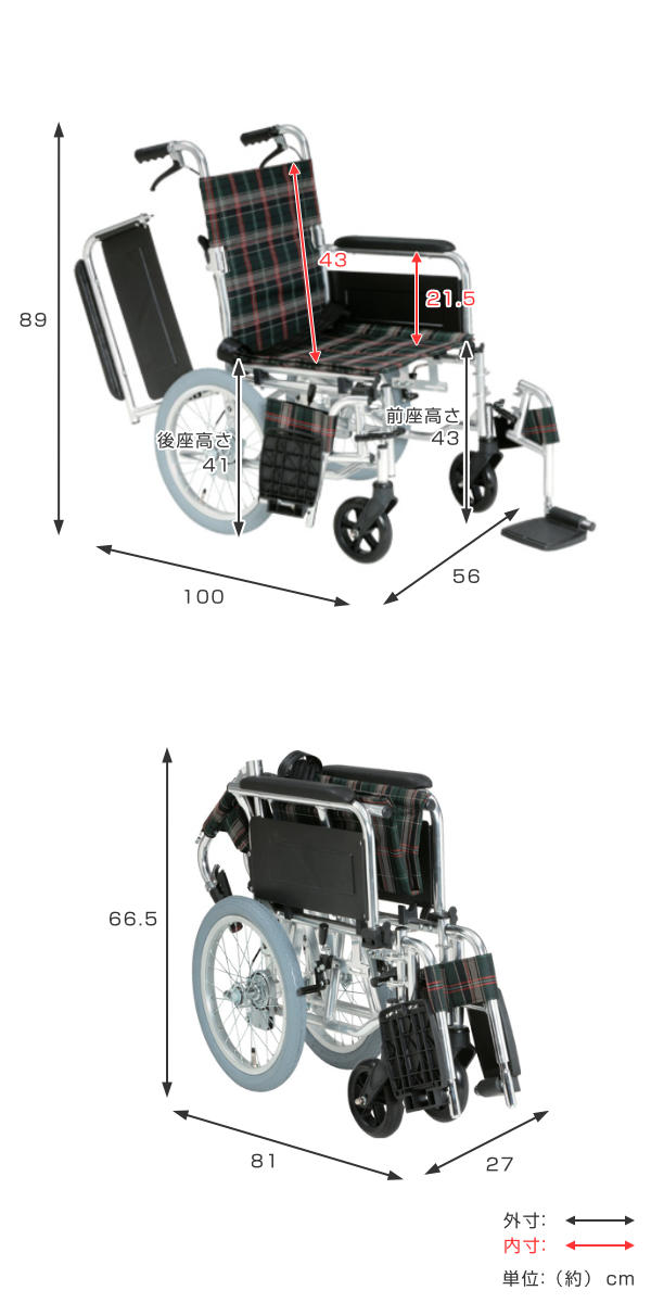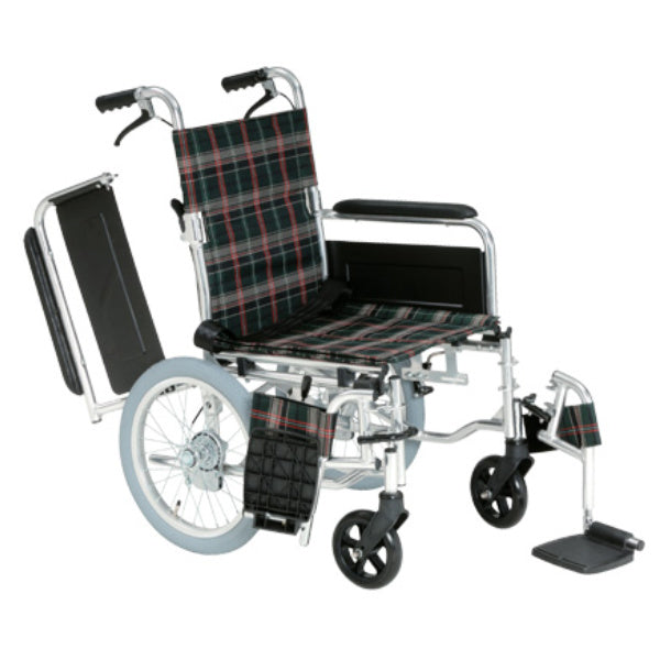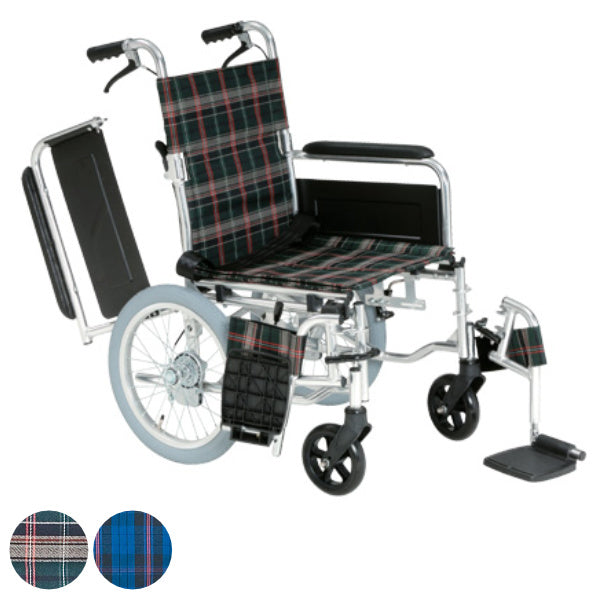 多機能車いす 跳ね上げ式スイングアウトタイプ 介助式背折れ型 チェック柄 非課税
