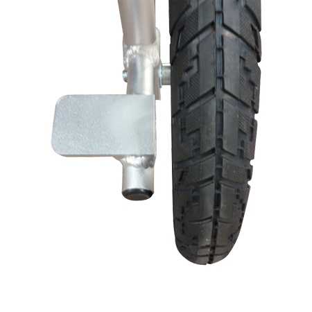 ![]() 介助者の足をかけられるティッピングプレートがついています。車椅子の後部に体重を掛けて、前部を持ち上げる時にご利用ください。 |