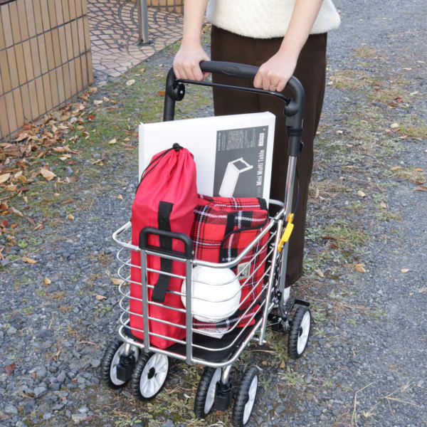 お買い物時の荷物はもちろん、ゴミの収集場所が少し遠くてもカートに乗せれば楽々運べるので日々のゴミ出しの時にも重宝します。洗濯物を洗濯機から移してそのまま移動できるので腰の負担を減らせ、洗濯物を取り入れるときにも便利です。ついつい荷物が多くなるアウトドアやイベントの時にもレジャーシートやテントなどたっぷり乗せて楽々運ぶことができるのでおすすめです。