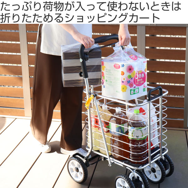 お買い物時の荷物はもちろん、ゴミの収集場所が少し遠くてもカートに乗せれば楽々運べるので日々のゴミ出しの時にも重宝します。洗濯物を洗濯機から移してそのまま移動できるので腰の負担を減らせ、洗濯物を取り入れるときにも便利です。ついつい荷物が多くなるアウトドアやイベントの時にもレジャーシートやテントなどたっぷり乗せて楽々運ぶことができるのでおすすめです。