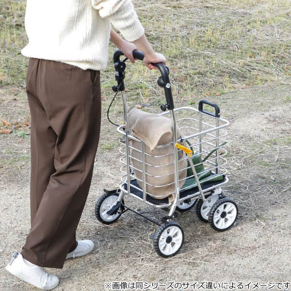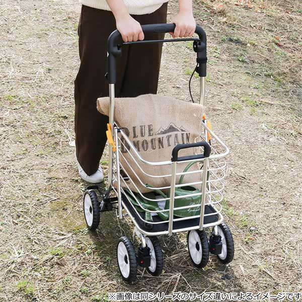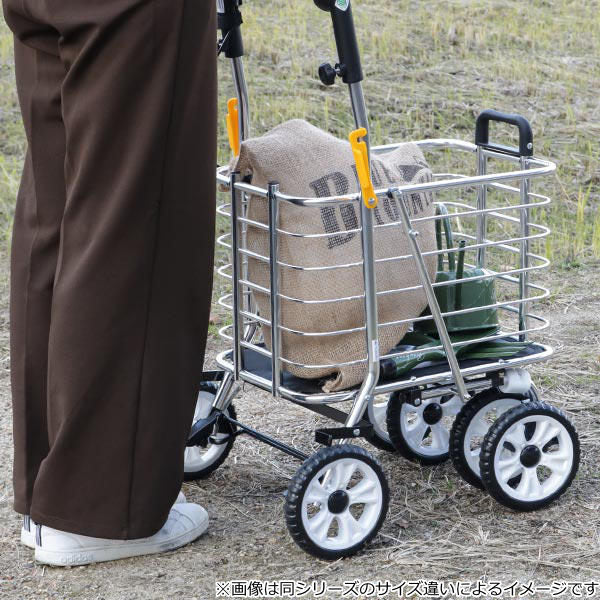 4輪タイプなので安定感があり、前輪はタイヤが2重になっているので凸凹道や段差でも移動が楽々行えます。家庭菜園やガーデニング、お散歩にもおすすめです。