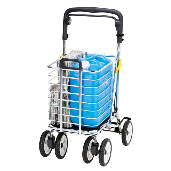 荷物がたっぷり入るワゴンタイプのショッピングカートです。最大積載重量は20kgと大容量なのでお米や飲み物など重いものもしっかり入り、お買い物の時に大活躍です。フレームはアルミ製で錆びにくく、スタイリッシュなデザインもポイントです。