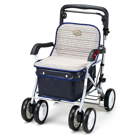 ●どこでも腰掛けられる、いす付きのシルバーカーです。