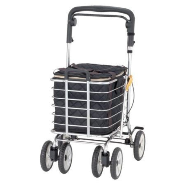 自立歩行が可能な方を対象とした歩行補助用具のシルバーカーです。より安定して歩行が出来るよう補助的にお使いいただけます。アルミフレームで構成された、丈夫なカゴ状の荷物入れです。また、万が一汚れてしまっても拭き取ればきれいになるのでお手入れも簡単です。保冷バッグ付きなので、食材をいれても安心です。