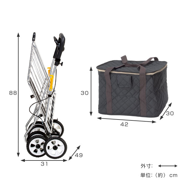 たくさんの荷物が収納できる保冷バッグ付き折りたためるワゴン