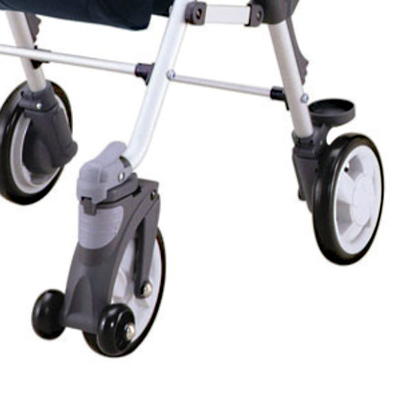 前輪はタイヤの向きが自由に変わります。また、タイヤの方向をロックすれば、直進走行性がよくなり坂道などでもしっかり歩けます。