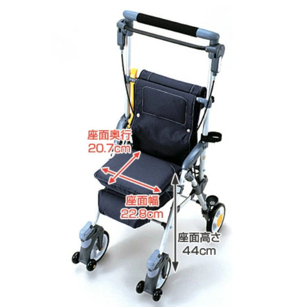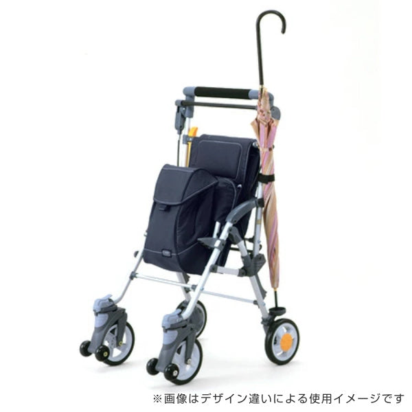 自立歩行が可能な方を対象とした歩行補助用具です。より安定して歩行が出来るよう補助的にお使いいただけます。お散歩やお買い物にも便利なバッグ・小物入れや、休息に用いる座面など利用者のことを考えたさまざまな機能が、生活を快適にしてくれます。