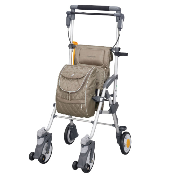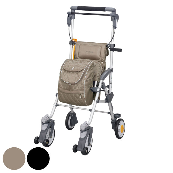 自立歩行が可能な方を対象とした歩行補助用具です。より安定して歩行が出来るよう補助的にお使いいただけます。お散歩やお買い物にも便利なバッグ・小物入れや、休息に用いる座面など利用者のことを考えたさまざまな機能が、生活を快適にしてくれます。