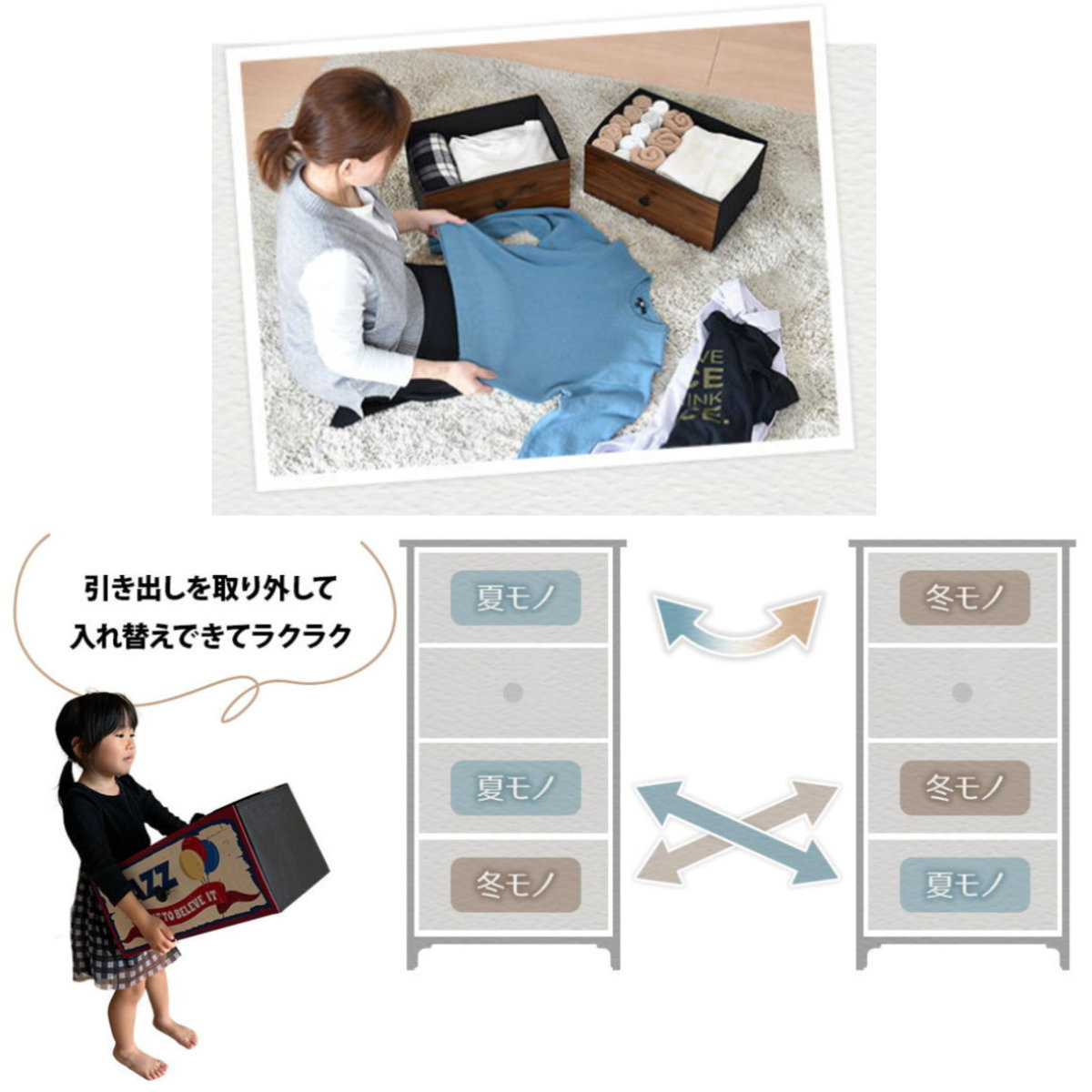 引出しを外して丸ごと入れ替えられるので、面倒な衣替えがスムーズ。