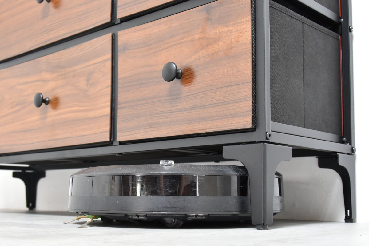 足にはアジャスターが付いているので、少しの段差やガタつきも調整可能。また、床とのすき間があるため、お掃除ロボットもスムーズに通れます。