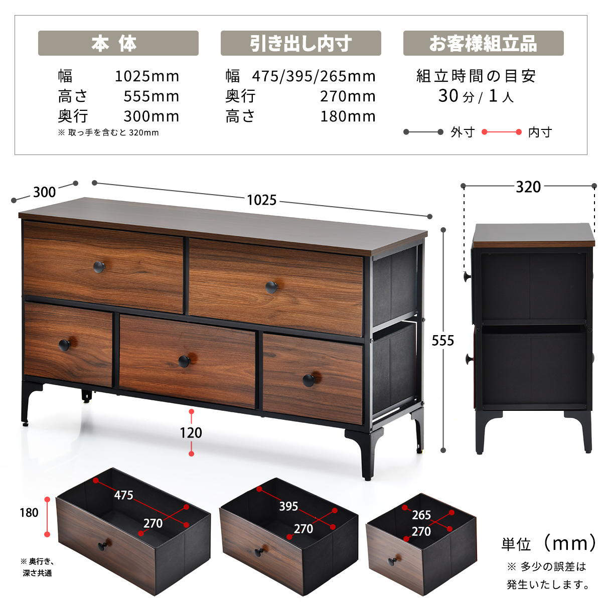 幅102cmの広々設計に、2段の深型引き出しを備えたタイプ。衣類やタオルはもちろん、CDや本、おもちゃまで、すっきり整理できます。シーズンオフの衣替え収納や、家族共用の収納スペースとしても使いやすいサイズ感です。