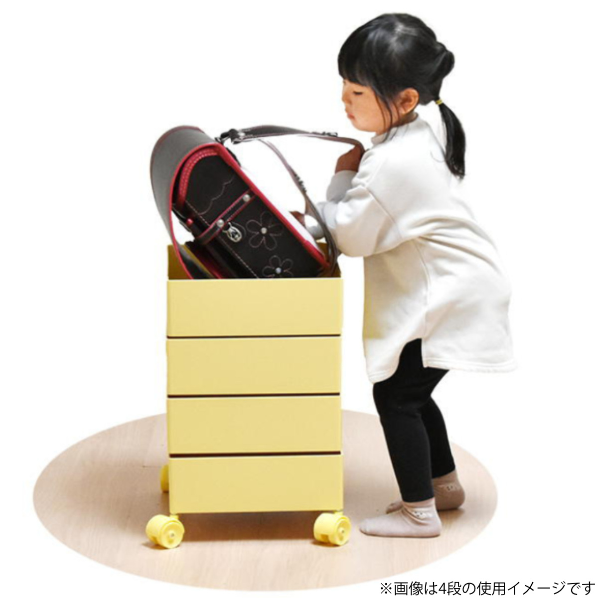 ちょっとした小物やマグカップを置ける上部トレー付き。天板代わりにも使えるので、ワークデスクの横やキッチンのサイドで便利に使えます。トレーを外せばランドセルも置ける広いスペースになり、お子さまにも使いやすい設計です。