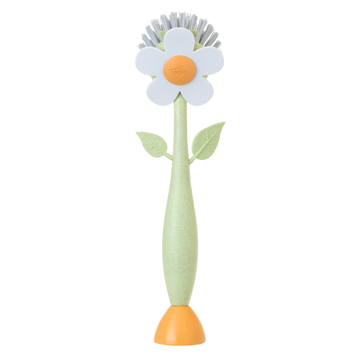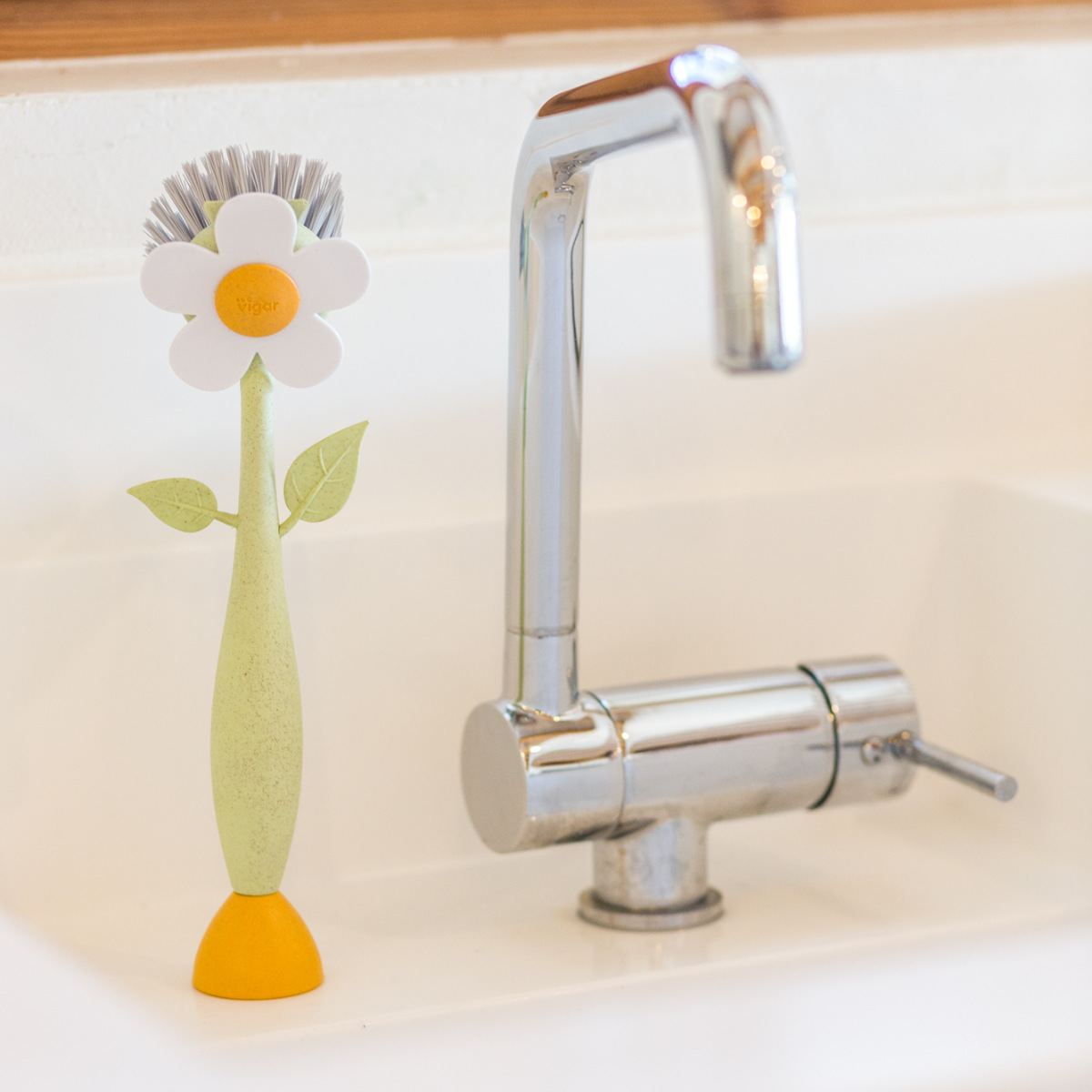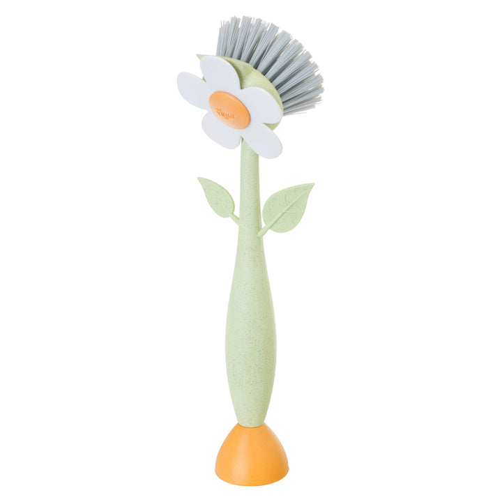ブラシは一本で自立するベースが付いているので、スペースを取らず手に取りやすいです。置くだけでお花が咲いているように見えるデザインです。