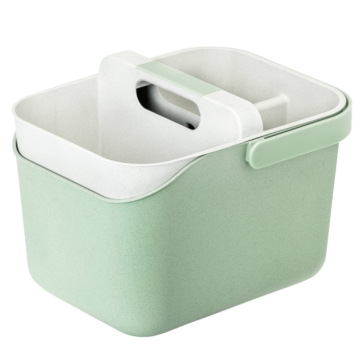 バケツと用具入れが一緒になったバケツ&キャディセットです。バケツ一つ分のスペースがあればすべて収まるため、省スペースで便利にお使いいただけます。一緒に持ち運ぶことで効率よく手軽にお掃除することができます。