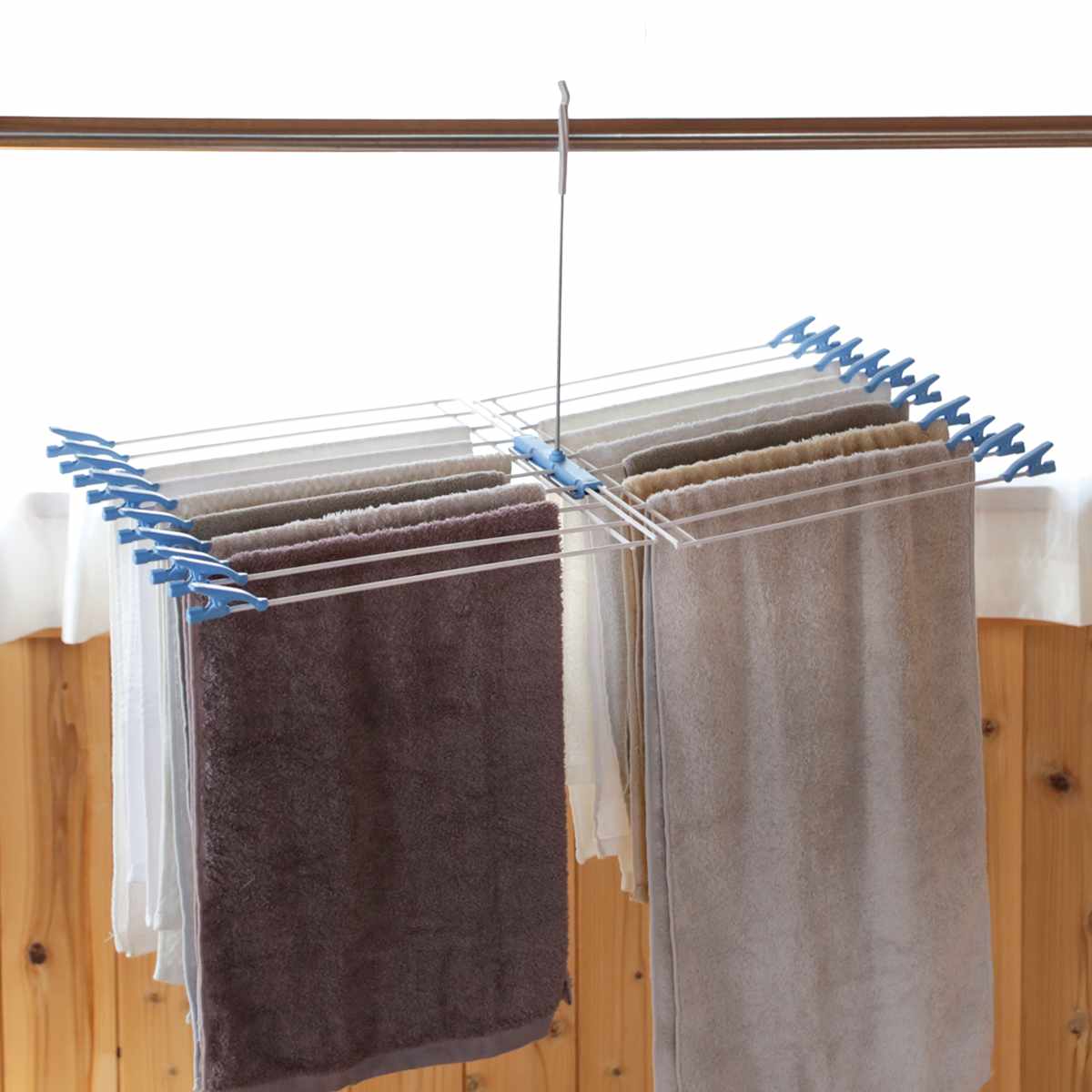 回転式フックで干しやすい