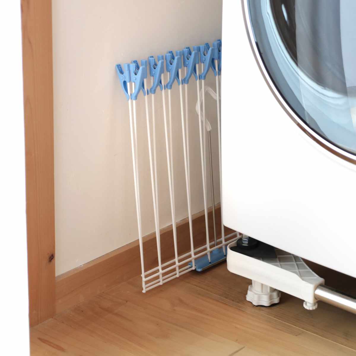 使用しない時は折りたたんで洗濯機横のスペースなどに、コンパクトに収納できます。