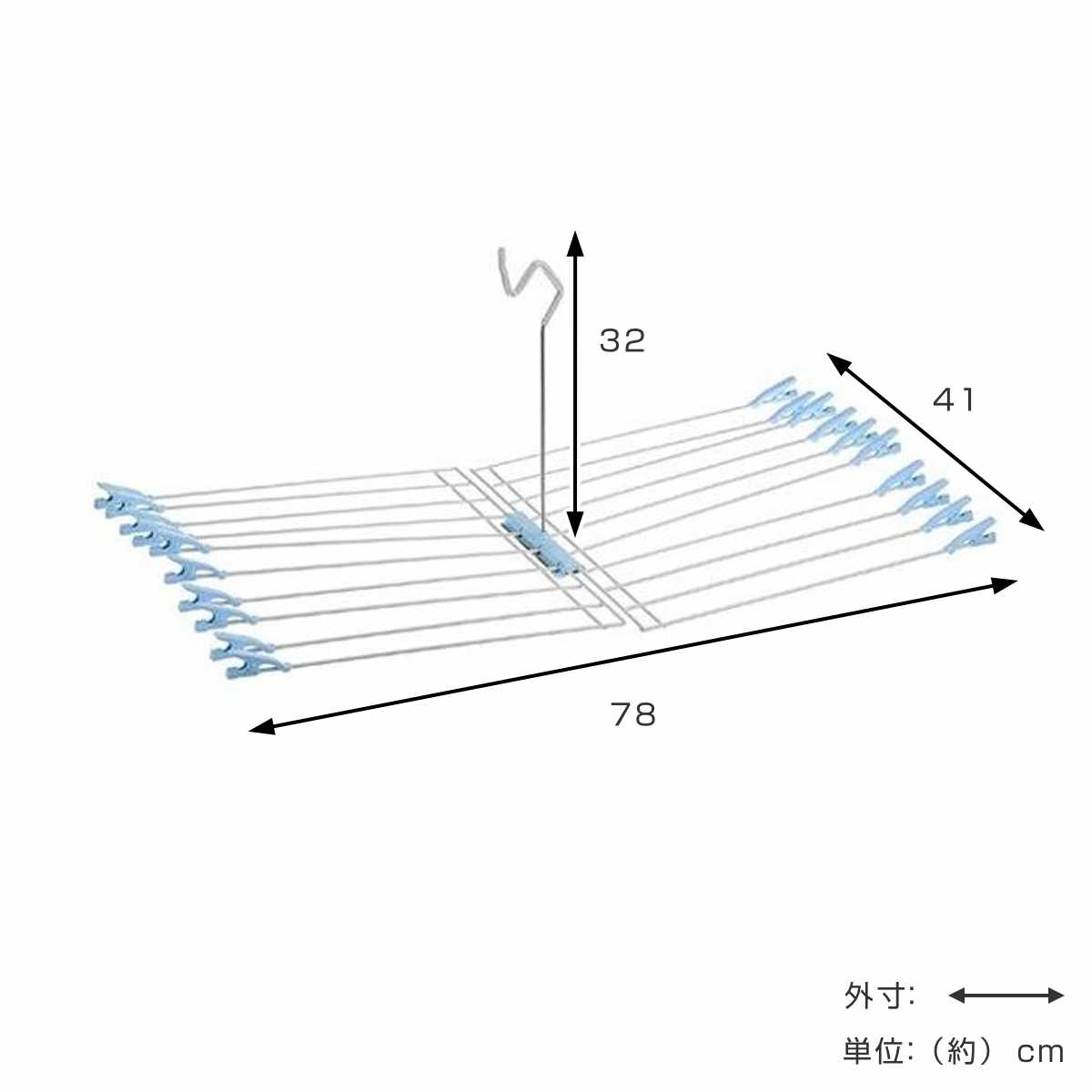 洗濯ロープにも掛けられるフック形状