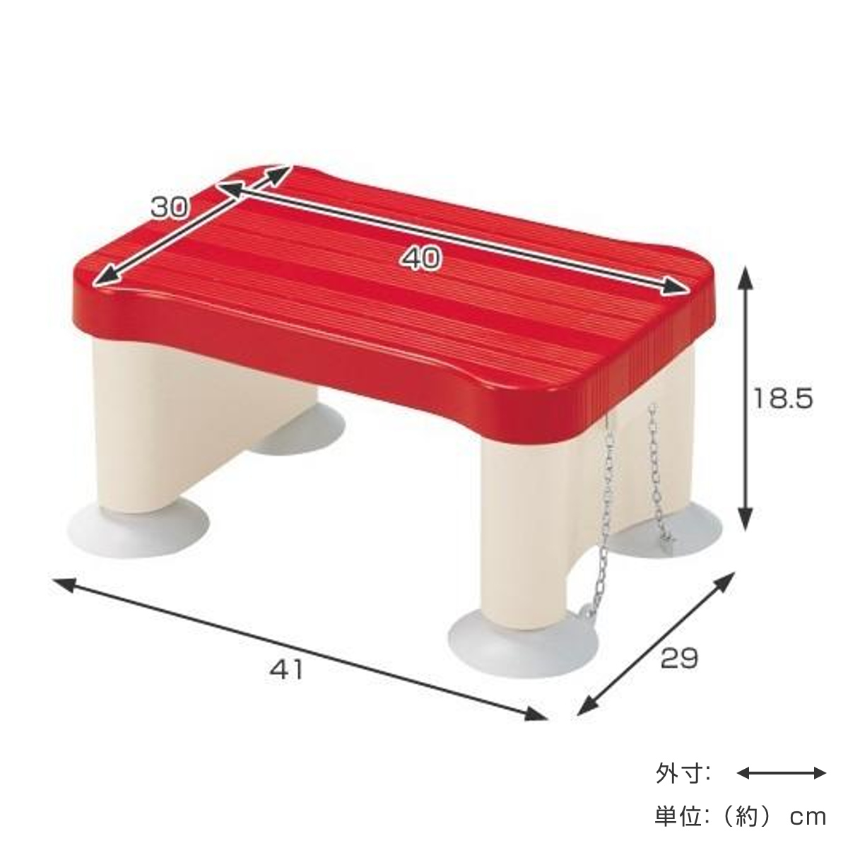移動時のステップにしたり、イスとして入浴時の姿勢を安定させたり、安全な入浴をサポートします。特殊形状の吸盤で床にしっかり固定できるため、体重をかけても横滑りしにくく安定します。取り付けた吸盤はオープナーで簡単に解除できます。