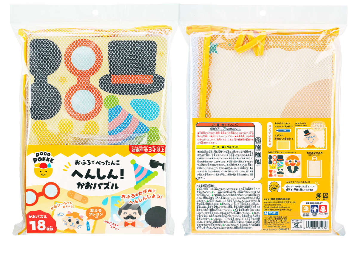 めがね・ひげ・ぼうし・蝶ネクタイなどの顔パーツが18種類。貼って遊ぶうちに、想像力・観察力が育まれます。水切れの良いネット付きで、乾きやすくお片付けも簡単。衛生的に保管できます。