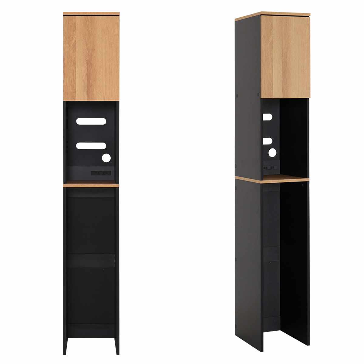 ゴミ箱上ラック 幅29.5cm 木目調 スリム 2口コンセント付き 可動棚