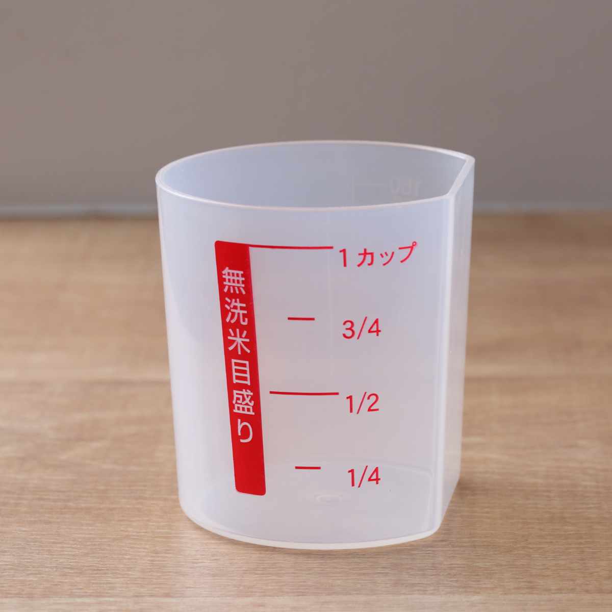 底面に傾斜がある仕様で、お米が奥から手前に流れるようになっています。お米の量が少なくなっても手前に集まってくれるので、お米が最後まで取り出しやすいです。
