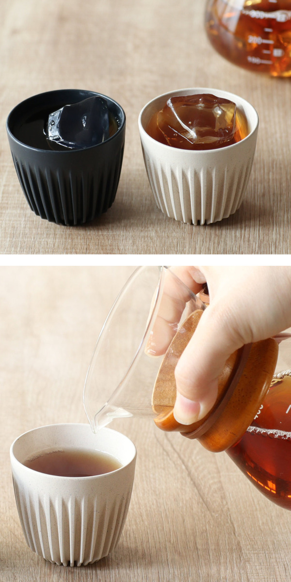 温かい飲み物も冷たい飲み物もどちらにもお使いいただけます。カップ表面に溝加工が施されているので手にとった時に熱さを感じにくい構造です。